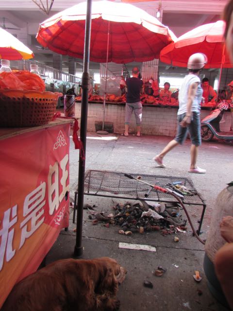 yulin6 June 28, 2015 480 × 640 玉林狗肉节 The Yulin Dog Meat Festival I pet this cocker spaniel while dog heads were prepared to be cooked on the metal table in front of me.